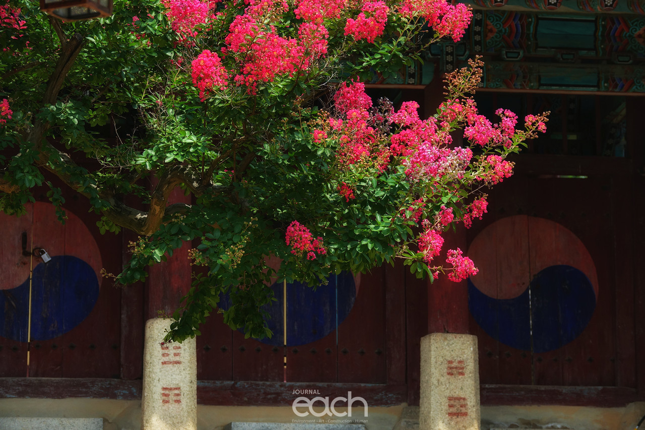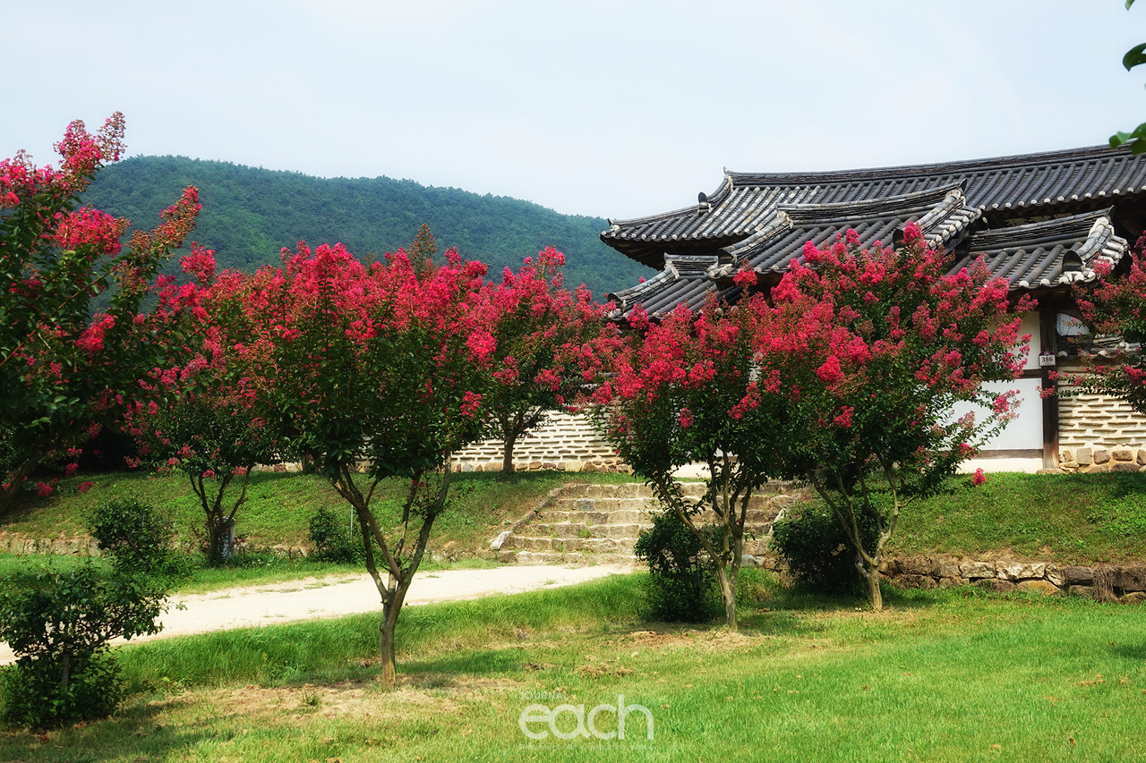 서원 건축의 백미라 할 수 있는 병산서원에 배롱나무꽃이 활짝 피어 서원을 방문한 이들의 눈을 호사스럽게 해준다. 배롱나무꽃은 백일홍이라고도 하며 분홍색의 배롱나무꽃말은 '부귀, 떠나간 벗을 그리워함'이라 한다.