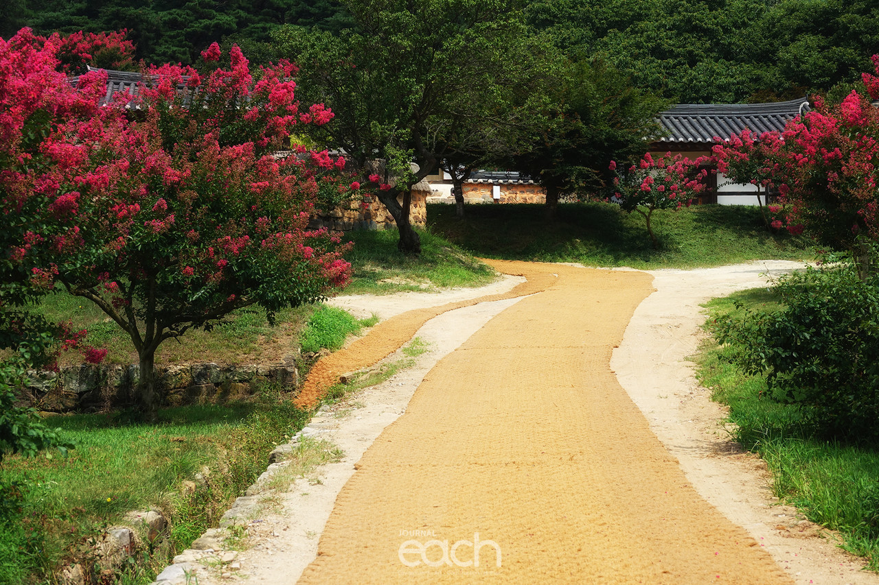 입교당에서 바라보는 뒷마당은 액자 그림을 보는 듯한 감흥을 느낄 수 있다. 뒤편엔 수령이 390년이 넘은 보호수 배롱나무 6그루와 제사를 준비하는 사당이 있다. 사당을 올라가는 계단이 예전에는 나무로 되어있었지만, 현재는 돌계단으로 되어있어 그 당시의 운치는 맛볼 수가 없다.