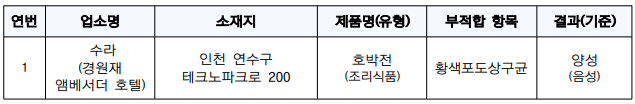 호텔 조리식품 32건 수거‧검사 결과, 1건 부적합