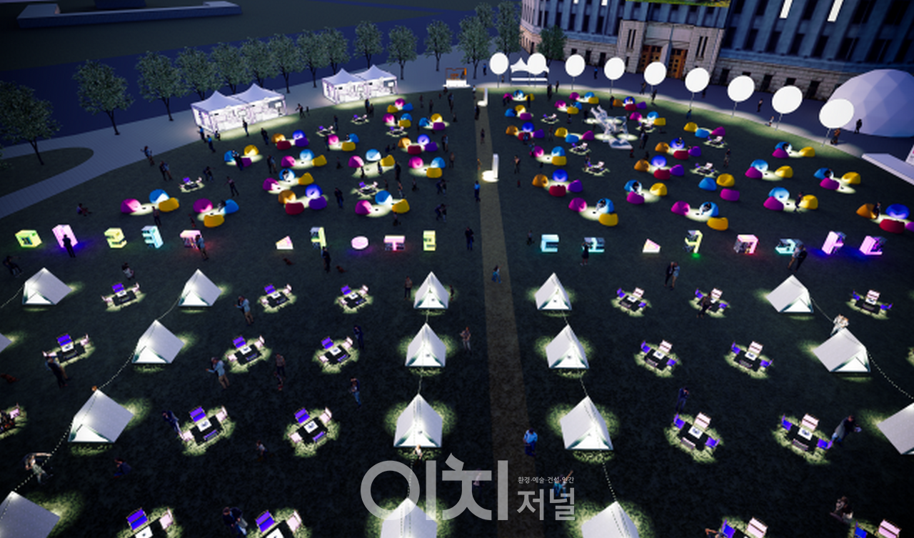 <밤의 여행 도서관> 행사에 서울광장 위에는 풀밭 위에 조명을 밝힌 텐트와 캠핑의자, ‘LED 빛 서가’, 달밤을 연상시킬 ‘풍선 조명’이 마련되어 ‘야간 북 캠핑’의 이국적인 분위기가 조성된다. 시민들은 도심 한가운데 펼쳐지는 밤 도서관에서 텐트와 빈백 위에 누워 책을 읽으며 한여름 열대야를 날릴 수 있다. 더해서 원터치 모기장을 무료 대여해주기 때문에 벌레와의 전쟁도 대비하고 있다.