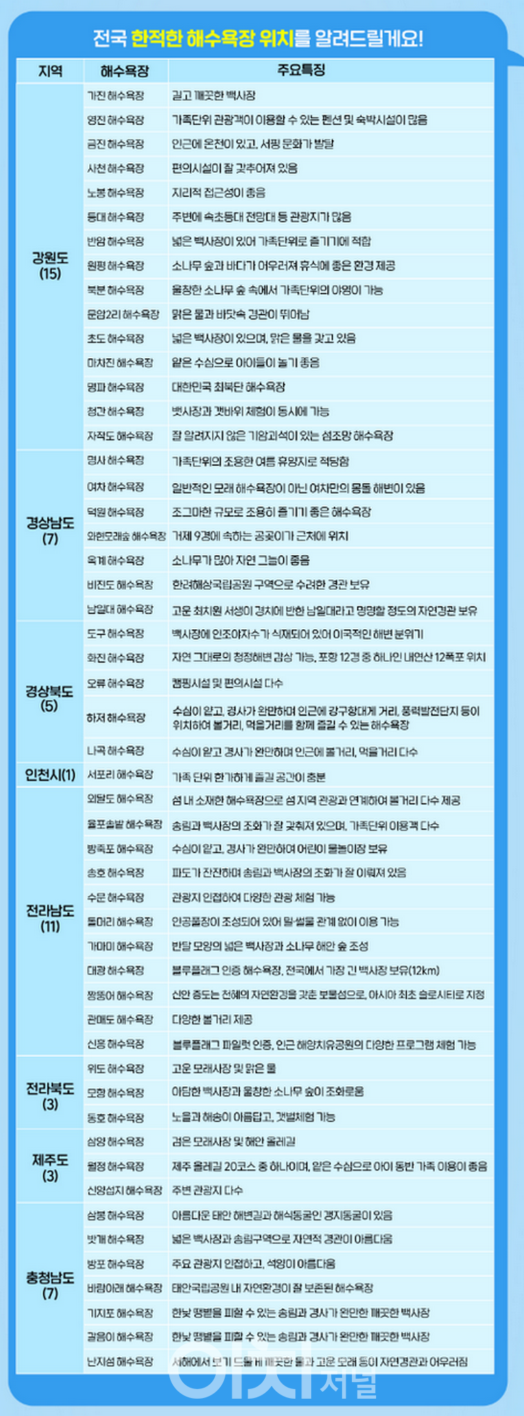 - 오류 해수욕장 : 캠핑시설 및 편의시설 다수