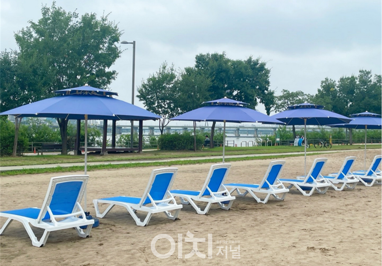 잠실의 경우 5,300㎡ 규모의 비치발리볼장에 ‘해변쉼터’가 조성됐다. 시민들이 누워서 여유롭게 피서를 즐길 수 있도록 선베드 40개와 파라솔 20개를 놓고, 간이그늘막도 세웠다. 규모가 커서 많은 시민이 찾을 것으로 예상되는 만큼, 방문객들이 더울 때 시원하게 씻을 수 있도록 샤워실과 탈의실도 설치했다.