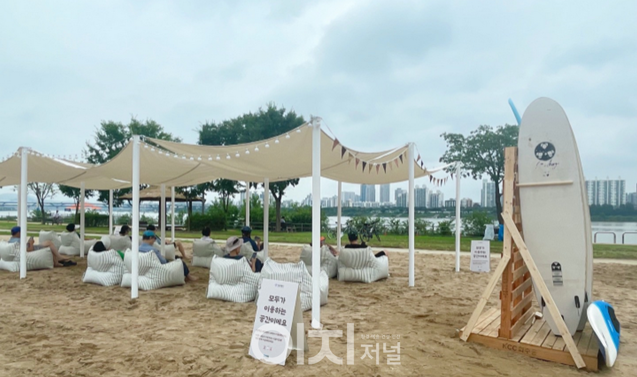 한강의 모래사장이 열대야로 잠 못 이루는 밤 시원한 강바람 맞으며 더위를 식히고, 아름다운 경치도 조망하며 쉬었다 갈 수 있는 ‘해변쉼터’로 변신했다. 도심 속에서도 마치 해변에 온 것처럼 새로운 매력을 느낄 수 있을 것으로 기대된다.