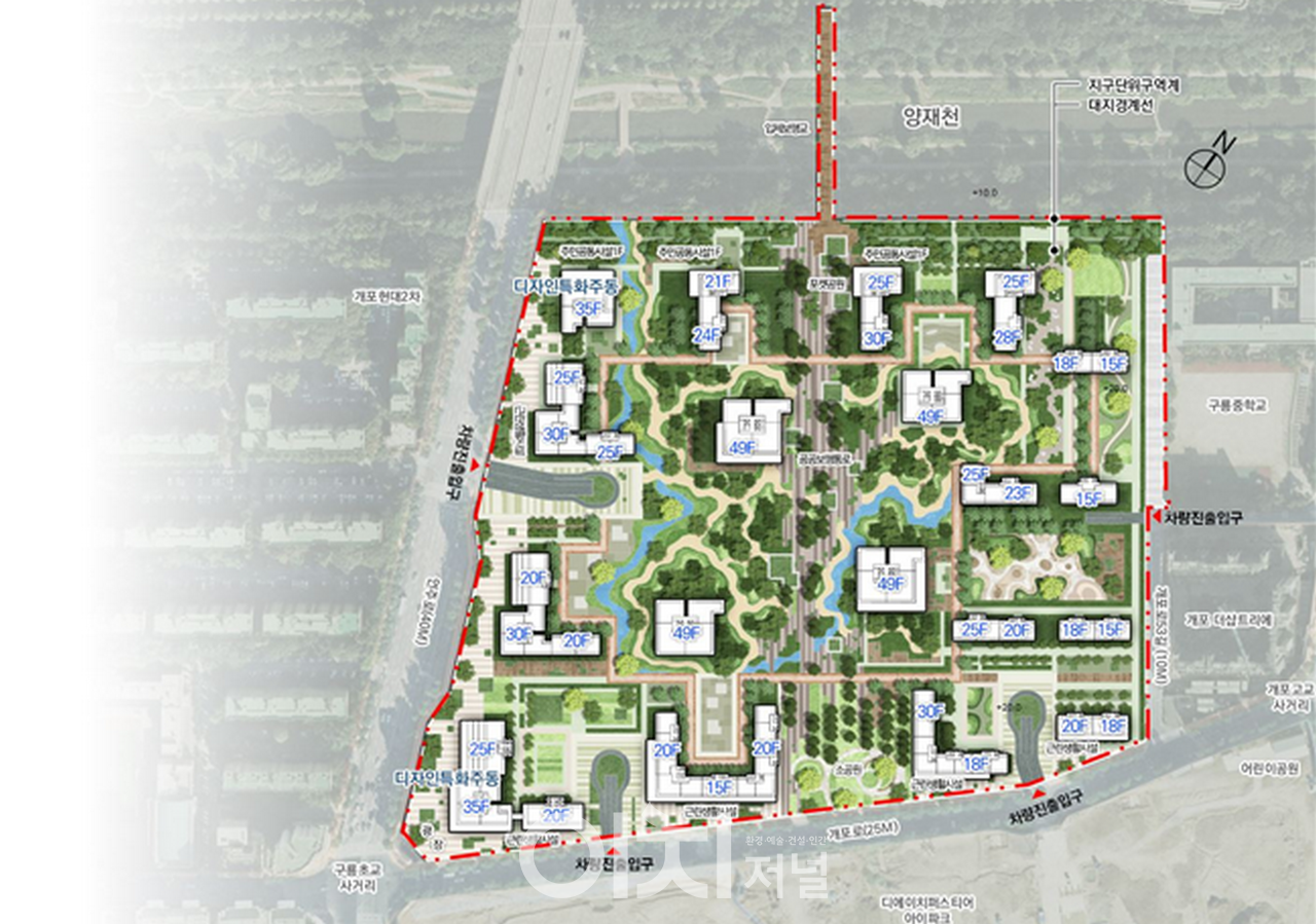 두 번째로, 주변 단지와의 연계는 물론 양재천 북측 도곡 생활권과 개포 생활권을 보행으로 연결하는 계획도 담았다.