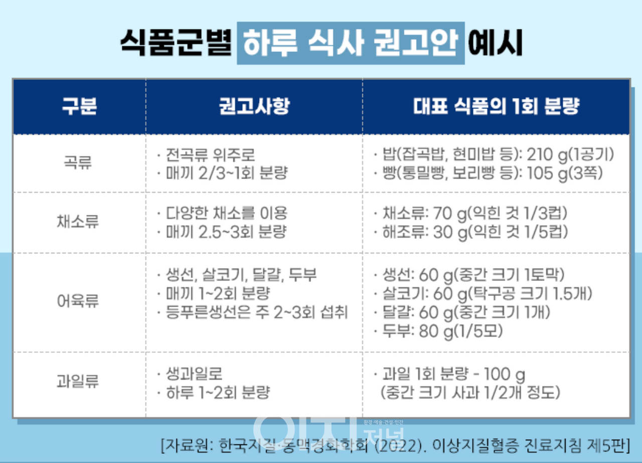 에너지와 영양소, 식품 섭취를 종합적으로 고려한 한국인에게 적합한 심뇌혈관질환 예방과 관리를 위한 식사요법은 다음과 같습니다.