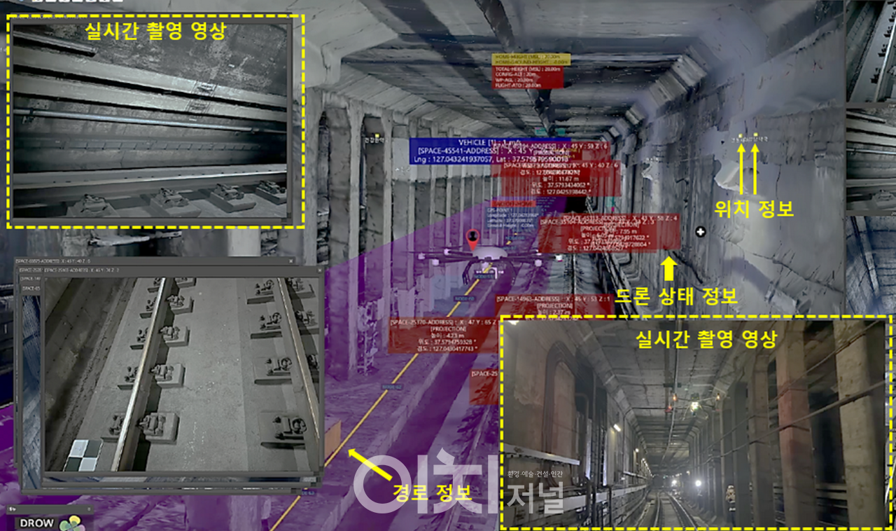 ’26년 말 준공을 목표로 구축중인 스마트 통합관제시스템과 연계하여 터널 안, 철교 및 교각 하부 등 GPS 신호가 잡히지 않아 드론의 자율주행이 불가능한 지역에서도 드론을 띄워 지하철 시설물을 점검할 수 있도록 시스템을 구축할 예정이다.