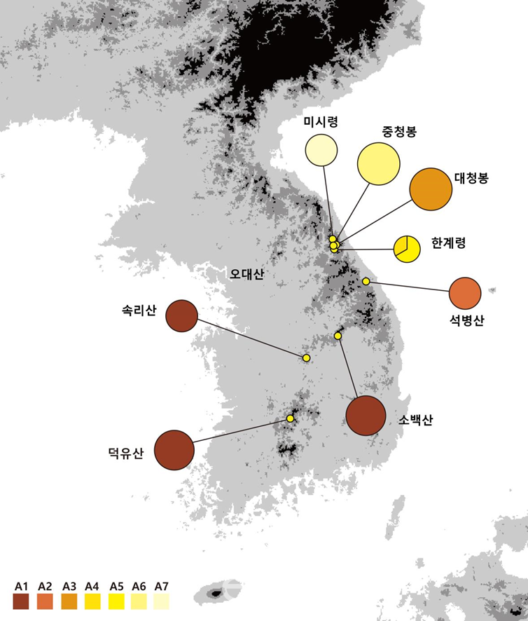 유전자 분석 결과, 총 7개의 유전자형을 확인했으며 설악산 5개, 석병산 1개, 소백산·속리산·덕유산이 공유하는 1개를 포함하는 등대시호 유전자형 지도를 완성했다.