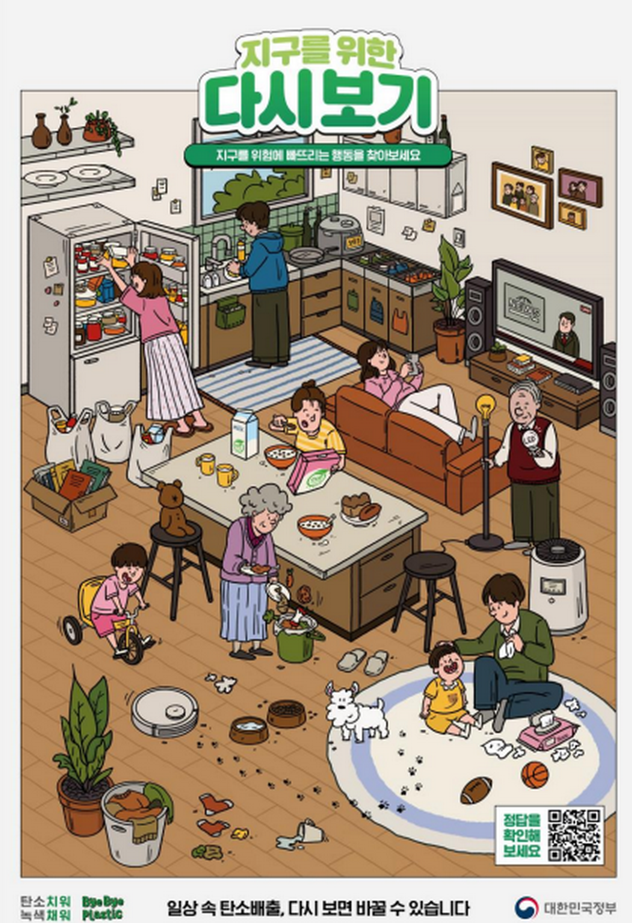 ‘일상생활’ 주제 행사로는 추억의 그림책 ‘월리를 찾아서’를 본떠 만든 숨은그림찾기로 ‘사무실’과 ‘가정’에서 일어나는 행동 그림판을 보며 지구를 위험에 빠트리는 탄소배출 행위를 찾는다.