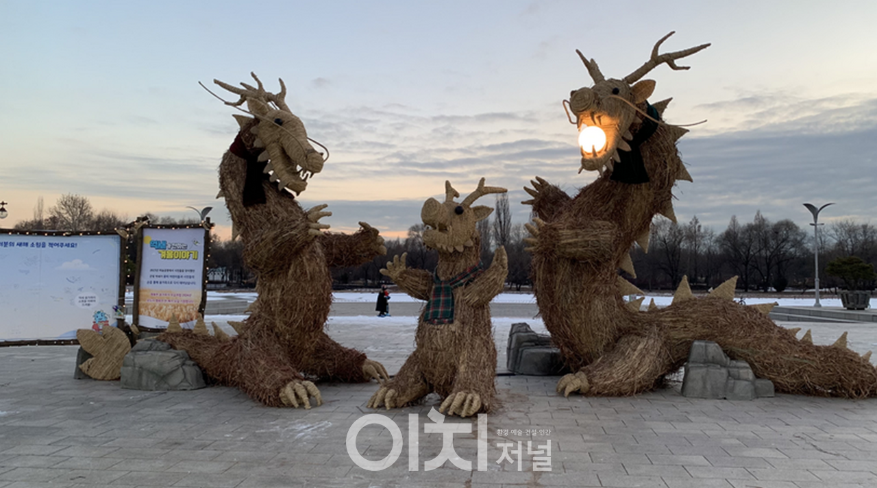 서울시 서부공원여가센터는 2024년 갑진년을 맞아 월드컵공원에서 2월 18일(일)까지 시민참여로 완성된 대형 억새 용가족 조형물을 전시한다.