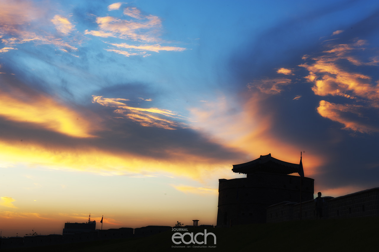 견고한 성곽과 능선 위에 세워진 장대의 위용은 하늘에 닿아있고 성곽 주변에 잘 정돈된 산책로는 멋스럽고 아름다워 적을 방어하기 위해 만든 것이 아니라 아름다운 건축물을 조성한 것 같은 착각에 빠지면서 수원성을 설계한 조선후기 최고의 실학자이자 정치가인 정약용(丁若鏞)의 숨결을 느낄 수 있었으며 공사 감독을 맞은 채제공(蔡濟恭)의 노고를 더듬어 본다.