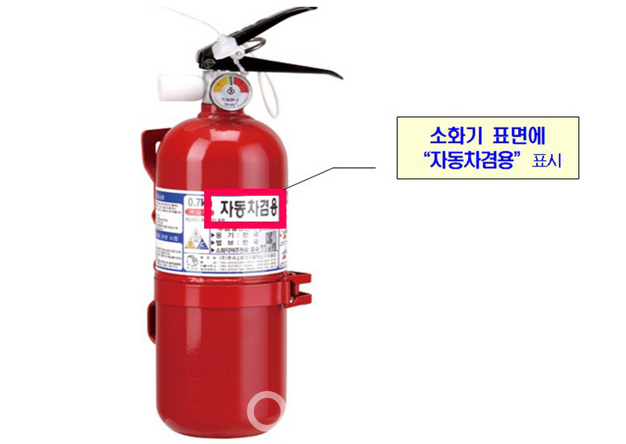 한편 차량용 소화기는 일반분말소화기의 성능시험뿐만 아니라 진동시험과 고온시험으로 부품이탈·파손·변형 등 손상이 없는 것까지 검증된 소화기를 의미하며, 소화기 용기 표면에 ‘자동차 겸용’ 표시가 돼 있다.