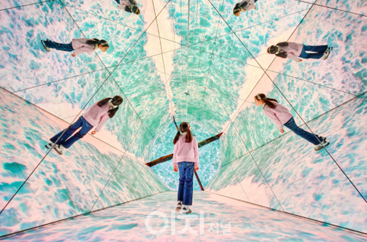 1,500평 규모, 육지‧바다‧우주 등 10개 주제 반응형 미디어아트 선보여… 압도적 영상
