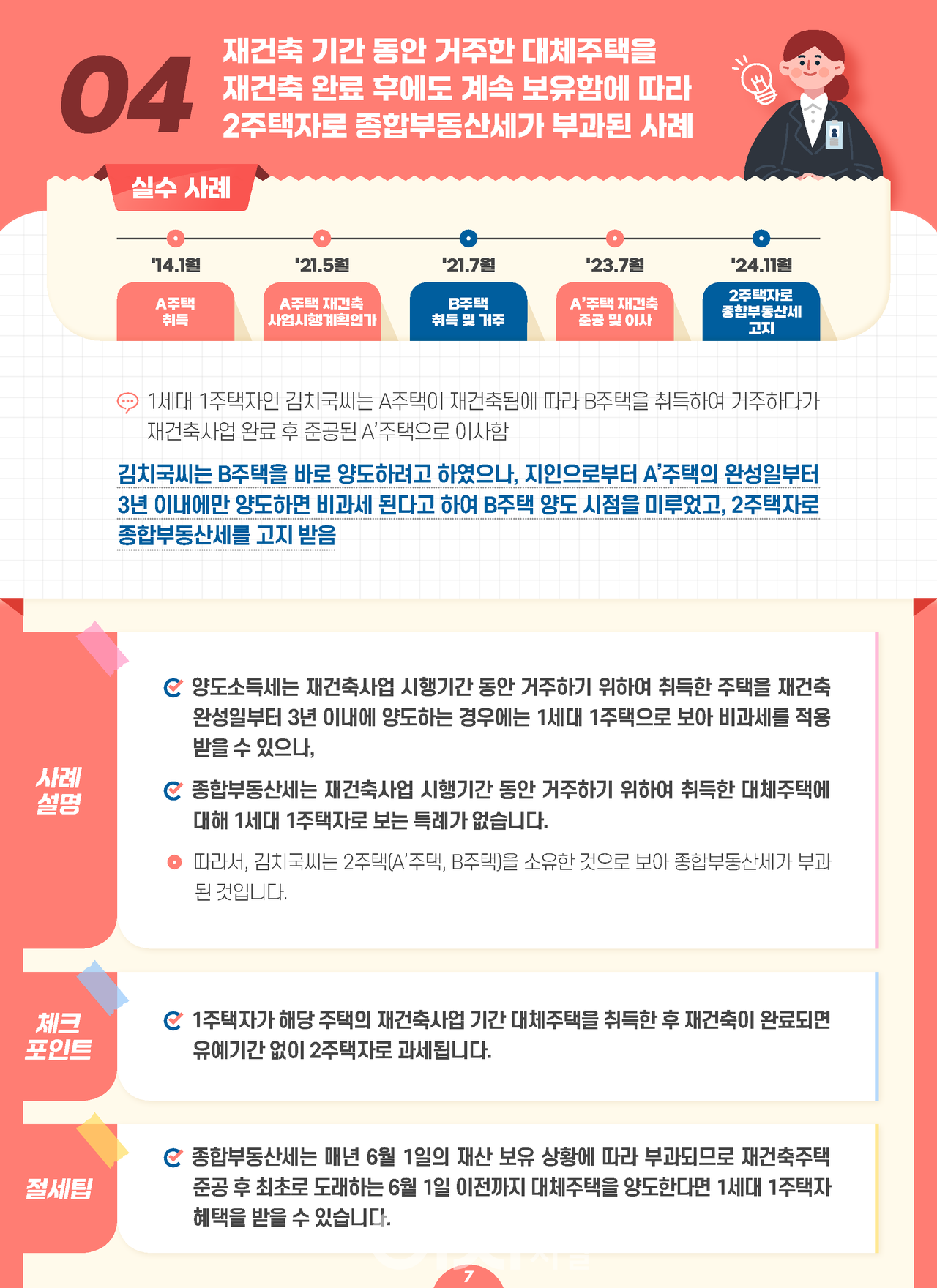또한 재건축 기간 동안 거주한 대체주택을 계속 보유함으로써 2주택자로 분류된 사례와 합산배제 임대주택의 임대 의무기간 미준수로 인한 세금 추징 사례도 소개됐다.