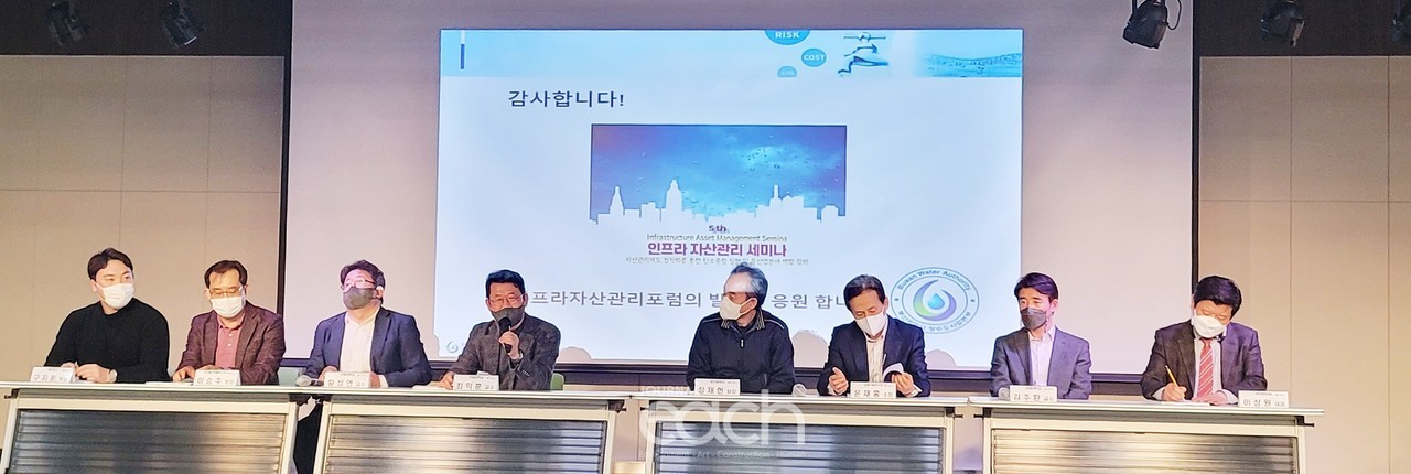 공공하수도 자산관리체계구축방안을 주제로 시범사업이 진행된 하수도 자산관리에 대한 국가물산업클러스터 이승주 부장의 주제발표에 이어 부산시 장재현 발표자는 부산시 상수도시설 자산관리체계구축 사례발표를 통해 2021년 12월에 구축된 부산시 상수도 자산관리시스템의 개요와 개발 구축 내용을 전반적으로 설명하였다.
