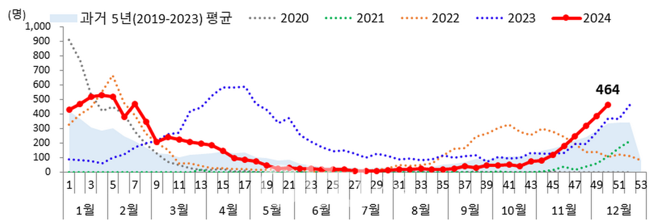 한편, 호흡기세포융합바이러스(RSV) 감염증도 최근 급격히 증가하고 있다. RSV 입원환자는 최근 4주간 1.9배 증가했으며, 전체 입원환자의 83.9%가 영유아(0~6세)로 나타났다. 이 외에도 코로나19 입원환자, 마이코플라즈마 폐렴 등 다양한 호흡기 감염병 사례가 동반 증가하고 있어 의료체계의 부담이 커질 것으로 예상된다.