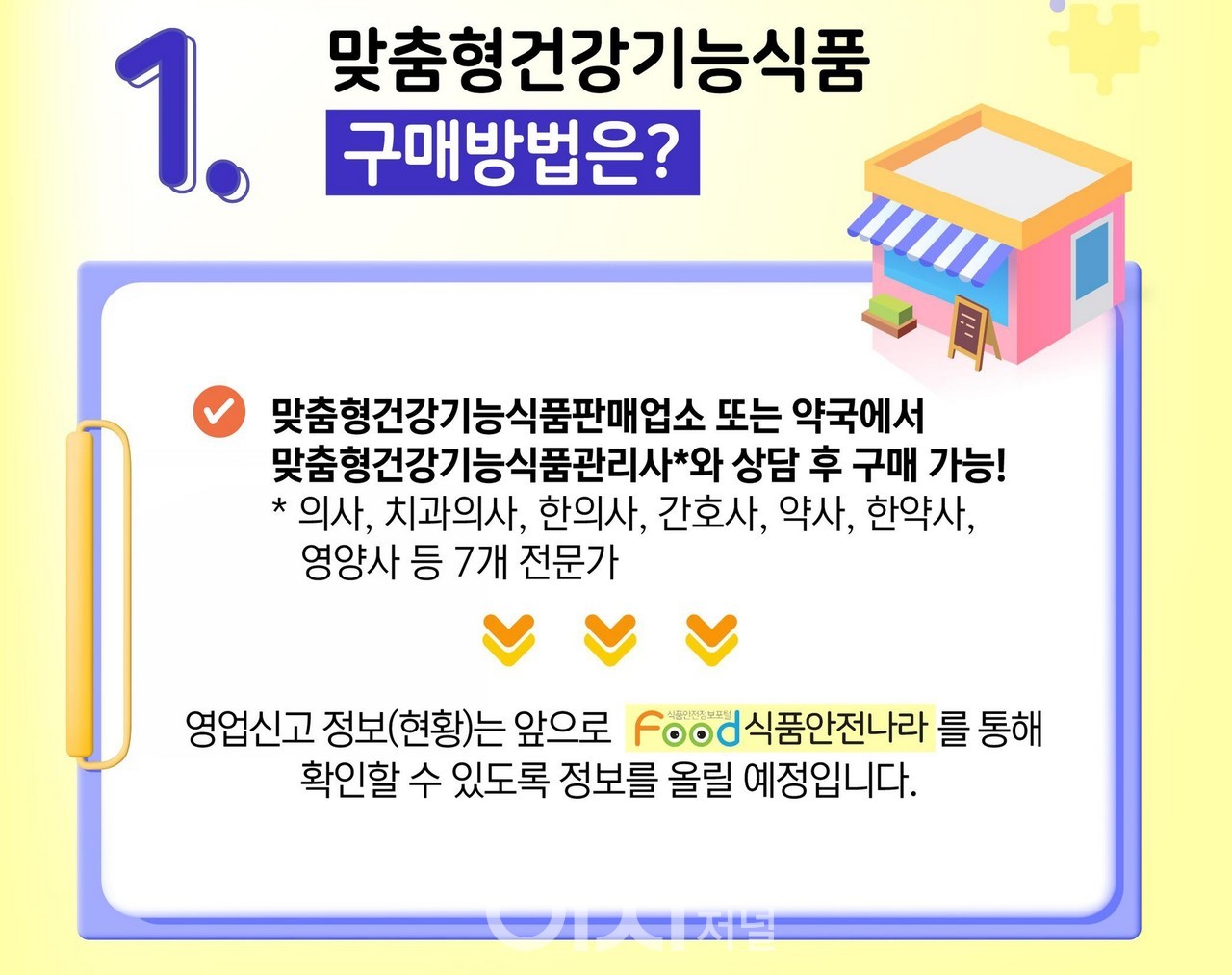 식품의약품안전처가 맞춤형 건강기능식품 시대를 열었다. 소비자가 자신의 건강 상태와 필요에 맞춰 건강기능식품을 골라 구매할 수 있도록 하는 맞춤형 건강기능식품 제도가 본격 시행된다. 지난 3월 19일 개정·공포된 「건강기능식품에 관한 법률 시행규칙」에 따라, 소비자는 전문 자격을 갖춘 맞춤형건강기능식품관리사와 상담 후 자신에게 필요한 제품을 소분·조합해 구매할 수 있다.