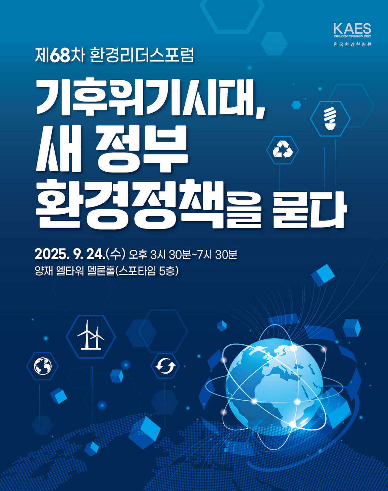 지구평균기온이 산업화 이전 대비 이미 1.5℃를 넘어섰고, 대기 중 이산화탄소 농도는 450ppm에 근접했다. 전 세계적 대응에도 불구하고 기후위기의 속도는 한층 가속화되고 있다. 이런 가운데 한국환경한림원(회장 허탁)이 오는 9월 24일 서울 양재동 엘타워에서 ‘기후위기 시대, 새 정부 환경정책을 묻다’를 주제로 제68차 환경리더스포럼을 연다. 이번 포럼은 정부가 확정한 기후·환경·에너지 통합 관리 정책의 방향을 점검하고, 향후 발전적 해법을 모색하기 위해 마련됐다.