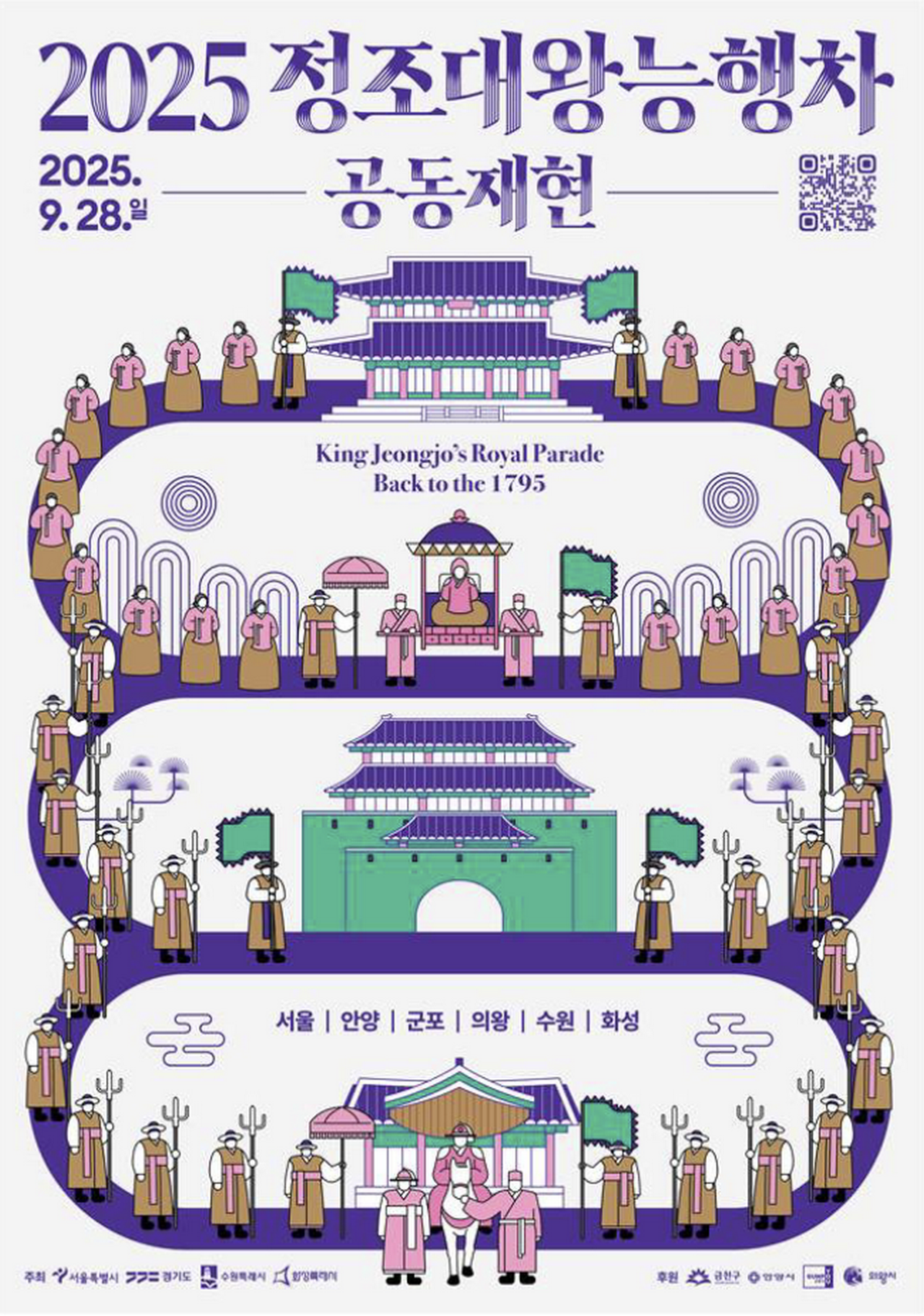 시민 5천 명이 함께 걷는 ‘효행길’이 230년 만에 다시 열린다. 서울과 경기, 수원, 화성시는 오는 9월 28일 오전 8시부터 「2025 정조대왕 능행차 공동재현」을 개최한다. 이번 행사는 1795년 정조대왕이 어머니 혜경궁 홍씨와 함께 아버지 사도세자의 융릉을 찾았던 원행(園幸)을 현대적으로 재현하는 것으로, 서울 경복궁에서 화성 융릉까지 31.3km 구간에서 진행된다. 시민 5천여 명과 말 138필이 참여하는 대규모 역사문화축제다.