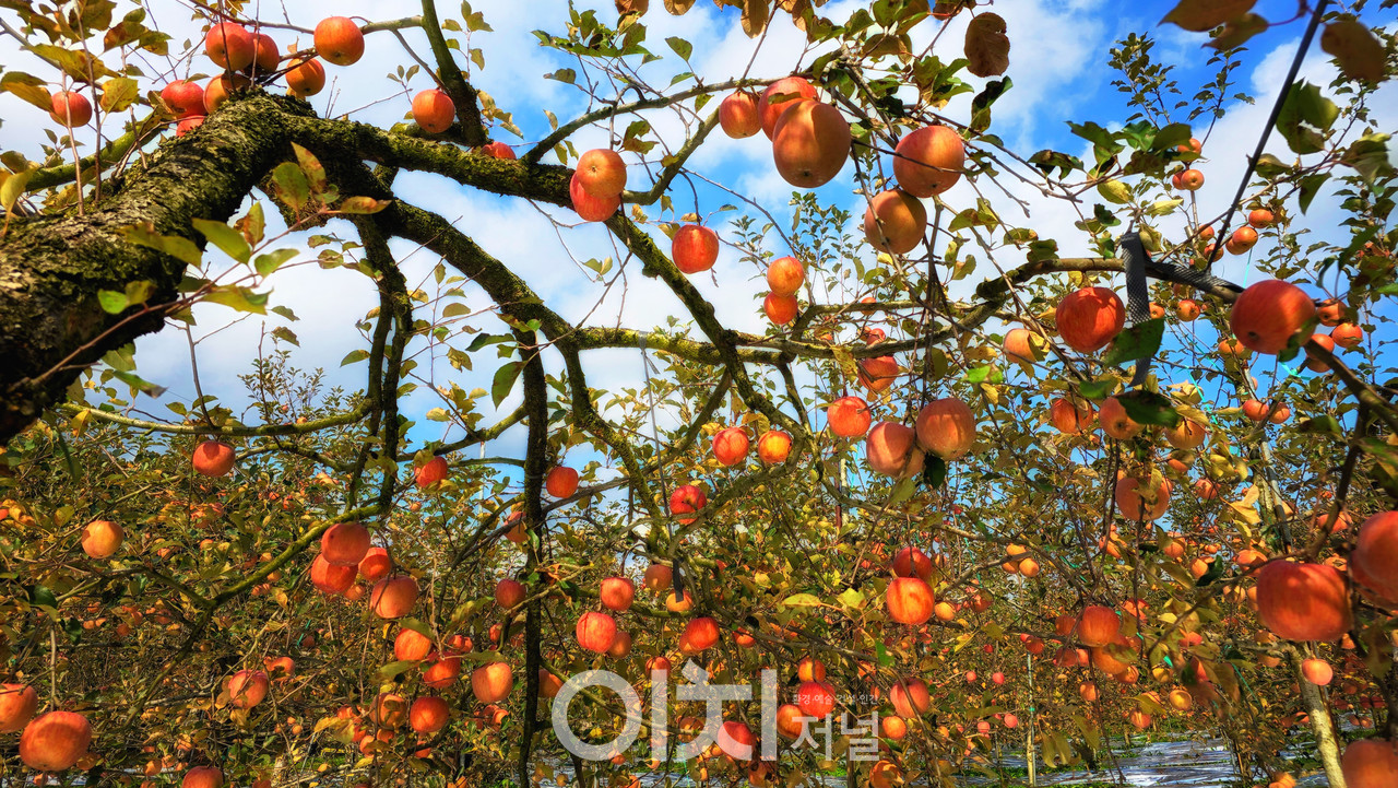 부사 수확이 한창인 이때, 사과밭은 그 어떤 계절보다 생명력으로 가득하다. 나무마다 걸린 붉은 열매들은 마치 작은 등불처럼 늦가을 햇살을 머금고 반짝인다. 한 손 가득 사과를 안아 들면, 그 무게 속에서 한 해의 시간이 느껴진다. 여름의 더위, 가을의 비, 그리고 기다림의 끝이 만들어낸 ‘가을의 맛’이 바로 여기에 있다.