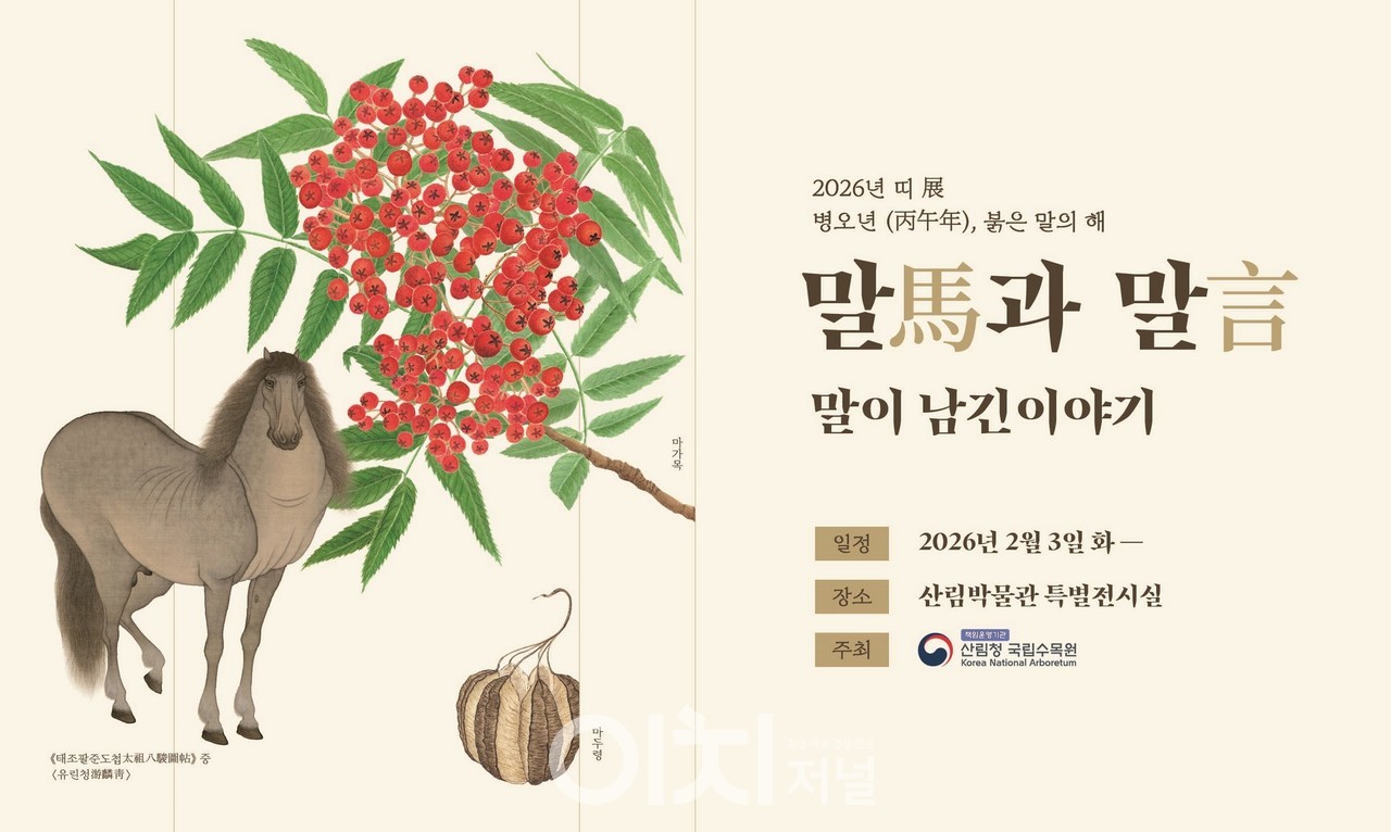 2026년 병오년은 상징적으로 강인한 에너지를 뜻하는 붉은 말띠의 해다. 이를 기념해 산림청 국립수목원이 아주 특별한 만남을 주선했다. 바로 우리 곁에서 오랜 시간 함께해온 동물인 말과, 우리 산천을 지켜온 식물 사이의 연결고리를 찾아 나선 것이다. 국립수목원은 오는 2월 3일부터 산림박물관 특별전시실에서 말과 인간, 그리고 식물의 관계를 조명하는 이색 전시를 개최한다.