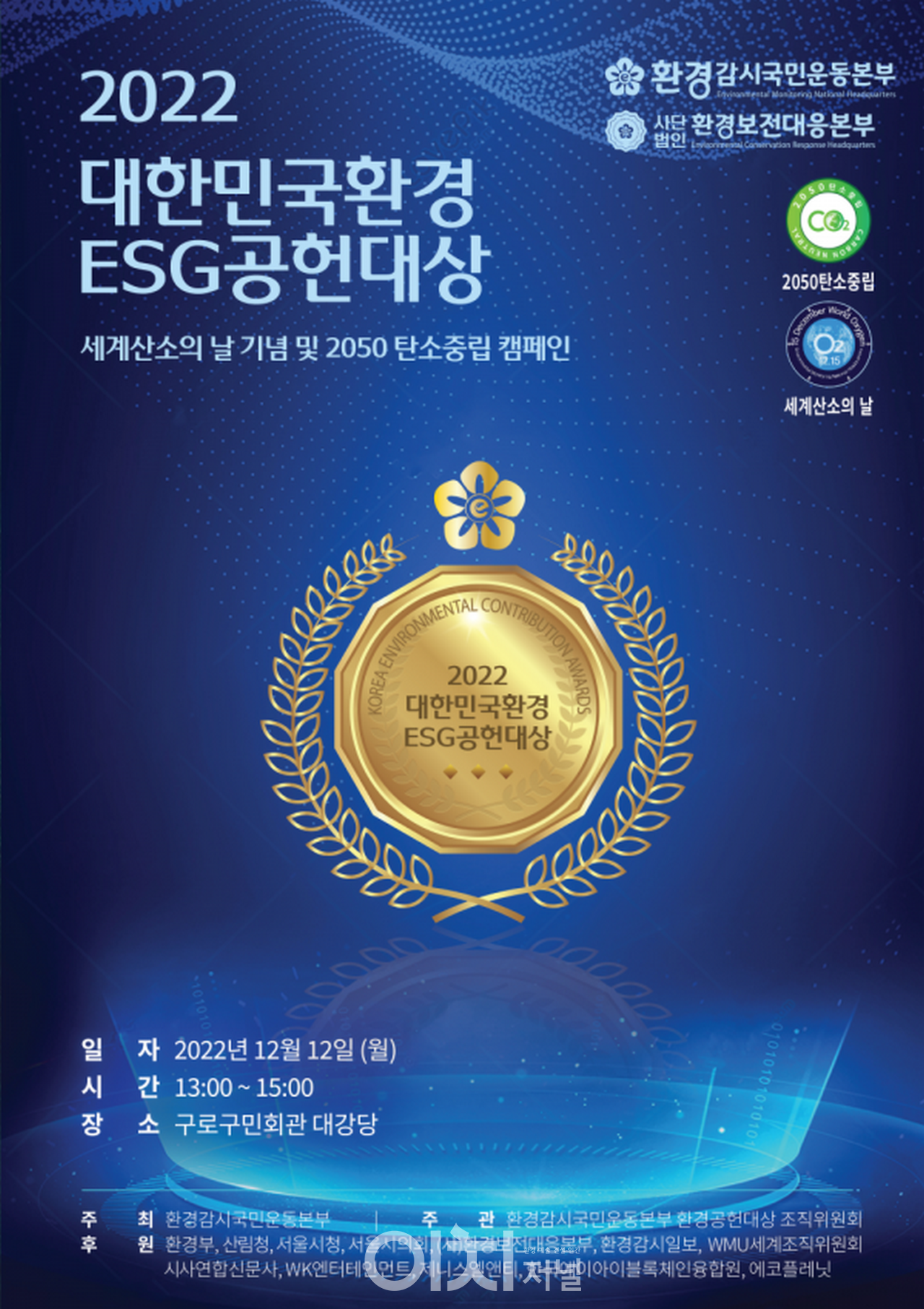 2022년 12월 12일(월) 오후 1시 ‘2022 대한민국환경 ESG공헌대상’이 구로구민회관 대강당에서 개최되었다.