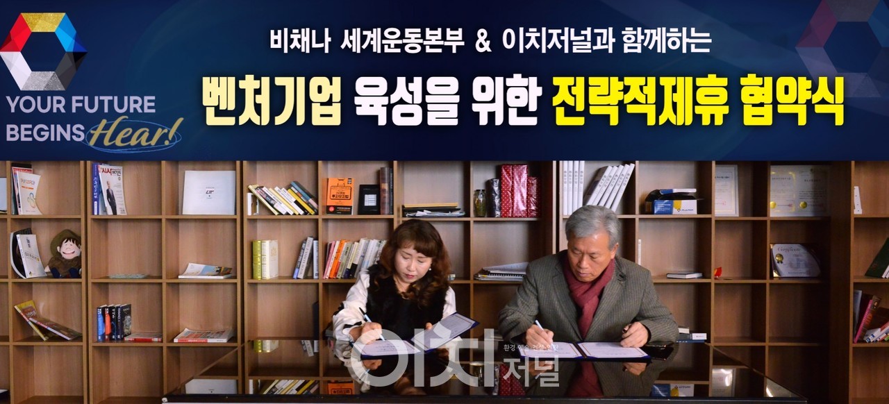 이치저널(대표 박미애)과 비채나 세계운동본부(총재 윤재환)는 12월 15일 동대문 비채나 창업보육센터에서 업무협약식을 개최했다.