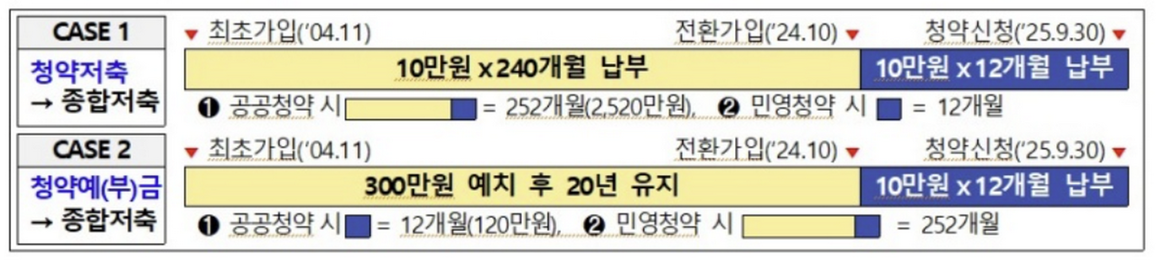 10월 1일부터는 기존 청약 예·부금 및 청약저축 가입자들도 주택청약종합저축으로 전환이 가능해진다. 이 전환을 통해 민영주택과 공공주택 청약의 선택이 구분되지 않고, 종합저축의 혜택을 모두 받을 수 있게 된다. 종합저축으로 전환 시 더 높은 금리 혜택과 배우자 통장 보유기간 합산 등의 추가 혜택도 주어진다. 이외에도 신규 납입분부터 청약 실적이 인정되는 점도 주목할 만하다.